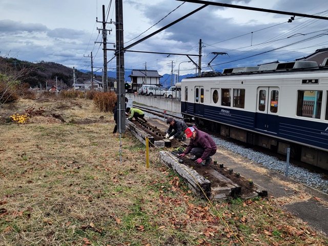 令和5年12月16日(土)に、川辺町ポケットパークと別所温泉駅花壇に「ビオラ」の苗を植えました。