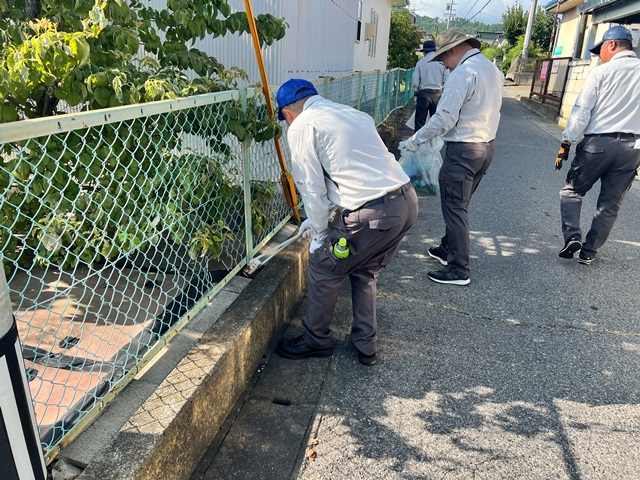 会社周辺の道路沿いについて美化活動(ゴミ拾い、草刈り)を実施しました。