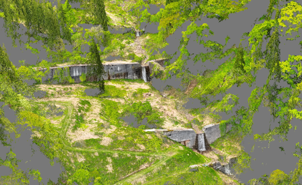 本実験では、LTE通信機能を備えたドローンにより、往復約10kmの広域被害想定ルートを自動航行で飛行。飛行中の通信状況の確認に加え、被災地の撮影、地物の判読、堰堤の状況把握、さらにオルソ画像や点群の作成など、多面的なデータ取得の有効性を検証しました。